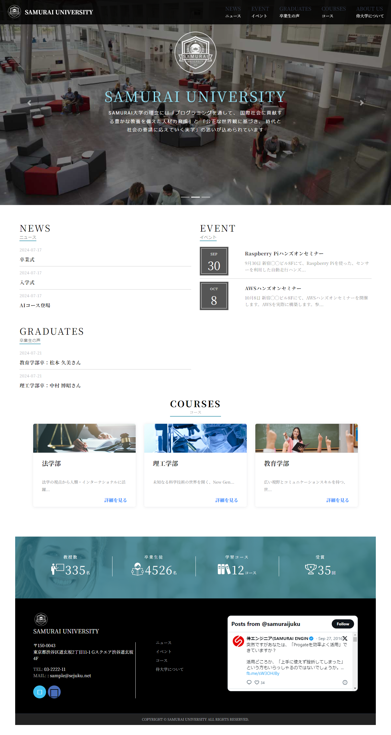 ブログのようにコンテンツを投稿できる機能を取り揃えています。またTwitterのフィードをサイト上に表示させることも可能です。